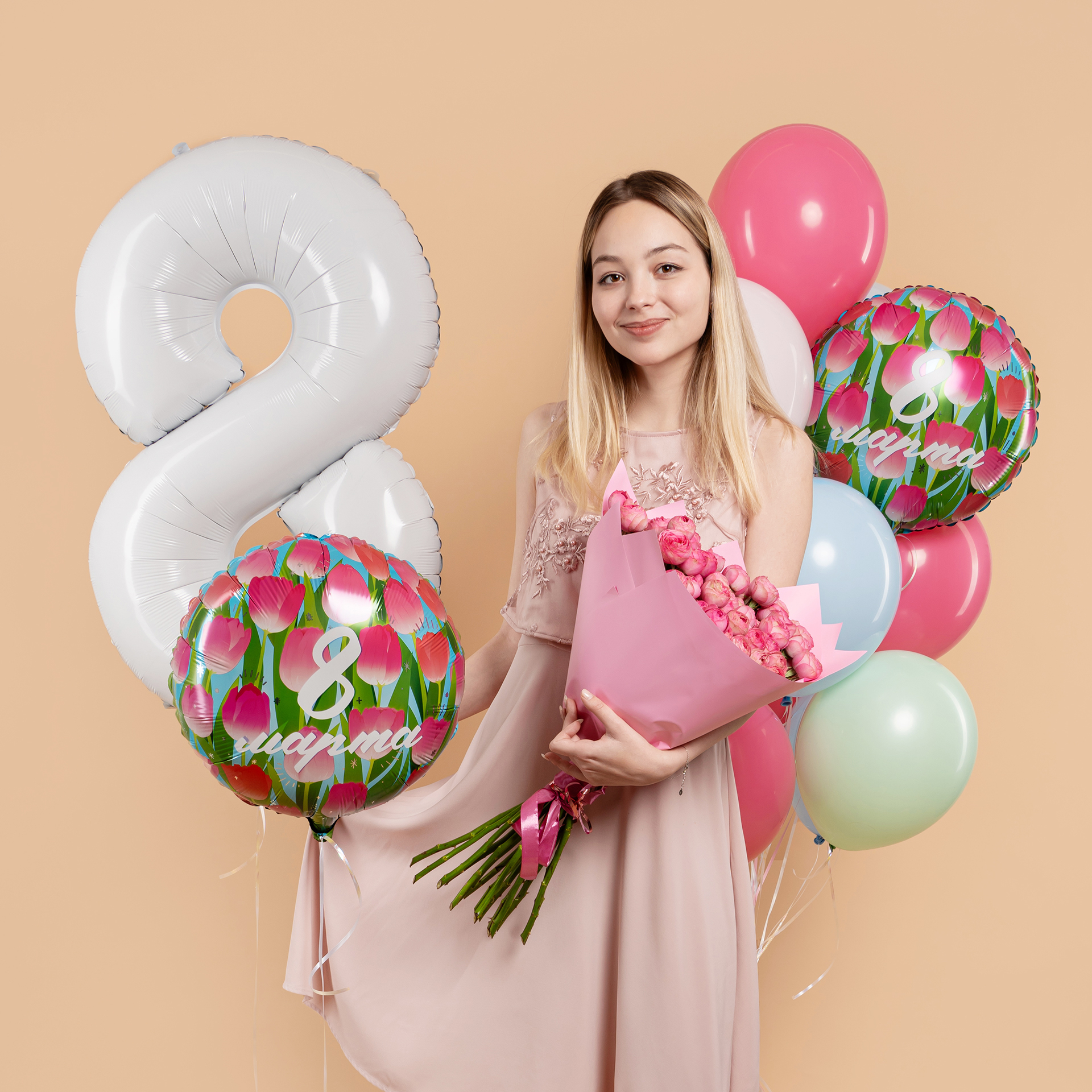 Нежная фотозона к 8 Марта создаёт атмосферу весеннего настроения, заботы и праздничного тепла. Воздушные оттенки розового и белого, цветочные акценты и крупная цифра делают фотосессию стильной, лёгкой и очень фотогеничной. Такая фотозона отлично подойдёт для поздравлений на 8 Марта, праздничных мероприятий и весенних съёмок, помогая создать уникальные и запоминающиеся кадры. Все товары из представленной фотозоны вы можете добавить в корзину одной кнопкой или изменить состав по своему желанию.