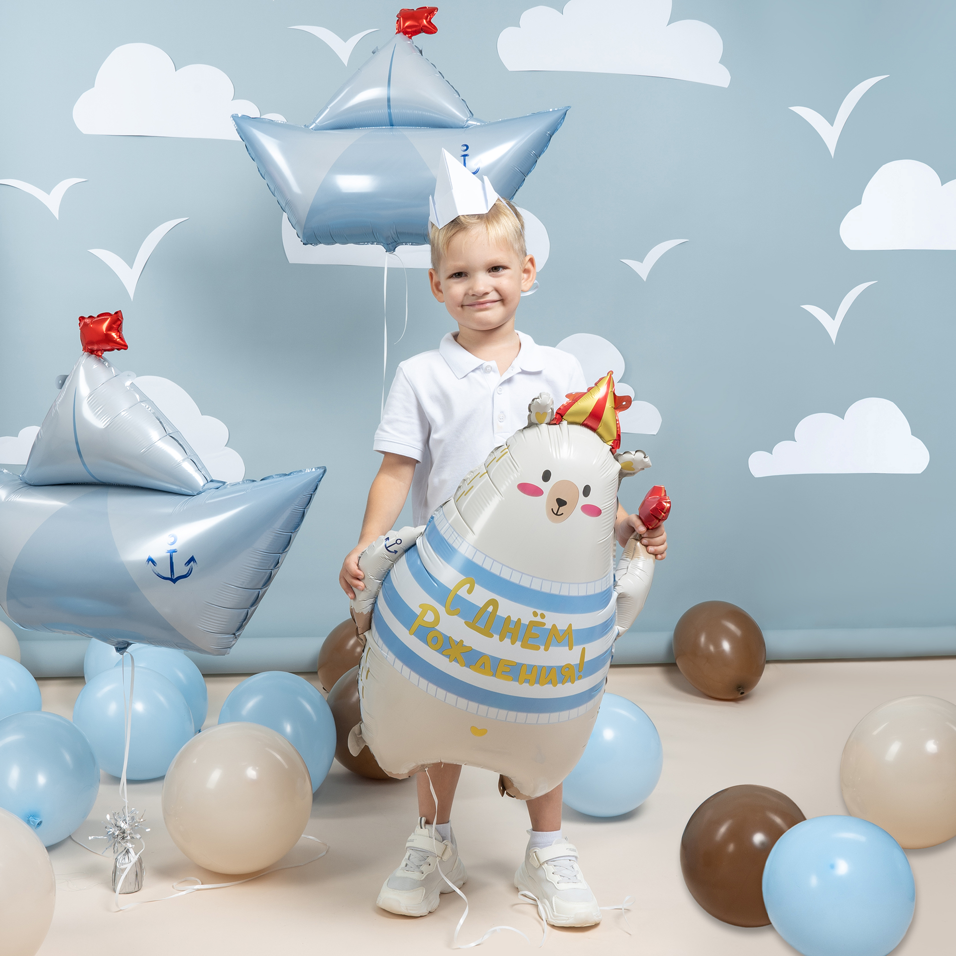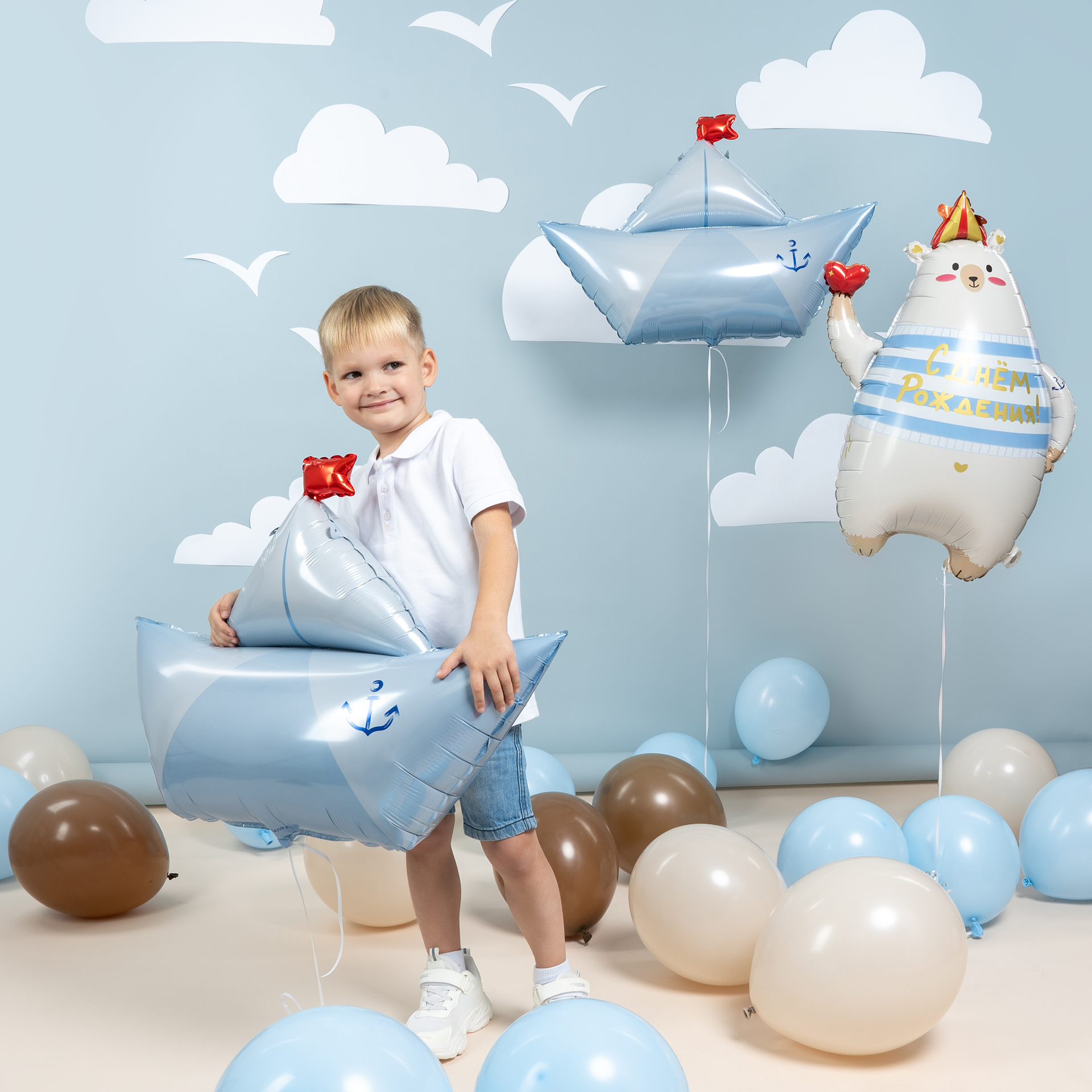 Фотозона в морской тематике с бумажными корабликами создаёт атмосферу лёгкости, мечты и детского приключения. Нежные голубые и бежевые оттенки, воздушный декор и морские акценты делают фотосессию стильной, спокойной и очень атмосферной.