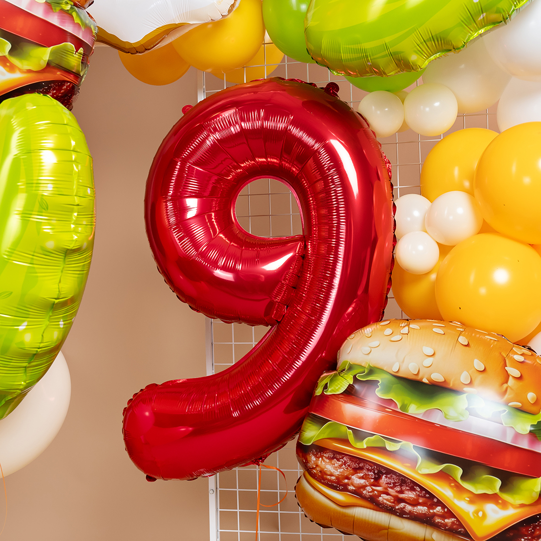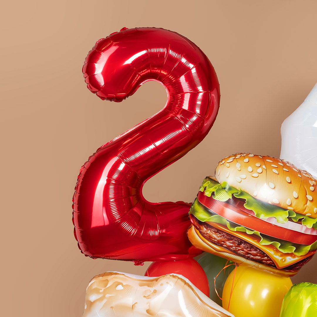 Яркая фотозона с фастфудом создаёт атмосферу драйва, юмора и настоящего гастро-праздника. Объёмные фигуры с аппетитными бургерами, яичницей и сочными зелёными акцентами притягивают внимание и делают оформление эффектным и запоминающимся. Насыщенная цветовая палитра добавляет композиции динамики и современного настроения.