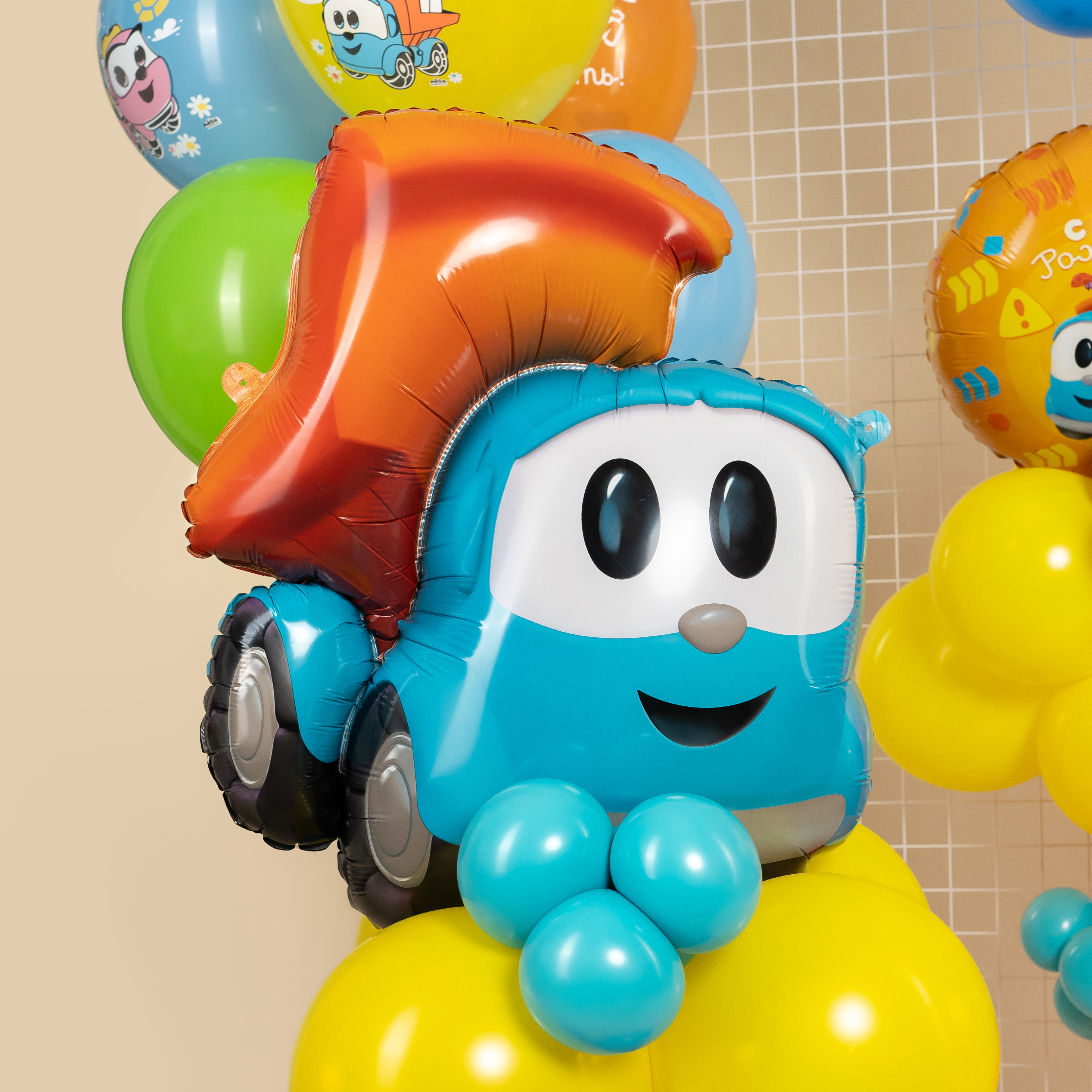 Яркая фотозона с героем мультфильма «Грузовичок Лёва» создаёт атмосферу весёлого и активного детского праздника. Любимый персонаж, насыщенные цвета и динамичный воздушный декор делают фотосессию живой, эмоциональной и очень увлекательной. Такая фотозона идеально подойдёт для детского дня рождения и тематической съёмки, помогая создать уникальные, радостные и запоминающиеся кадры. Все товары из представленной фотозоны вы можете добавить в корзину одной кнопкой или изменить состав по своему желанию.