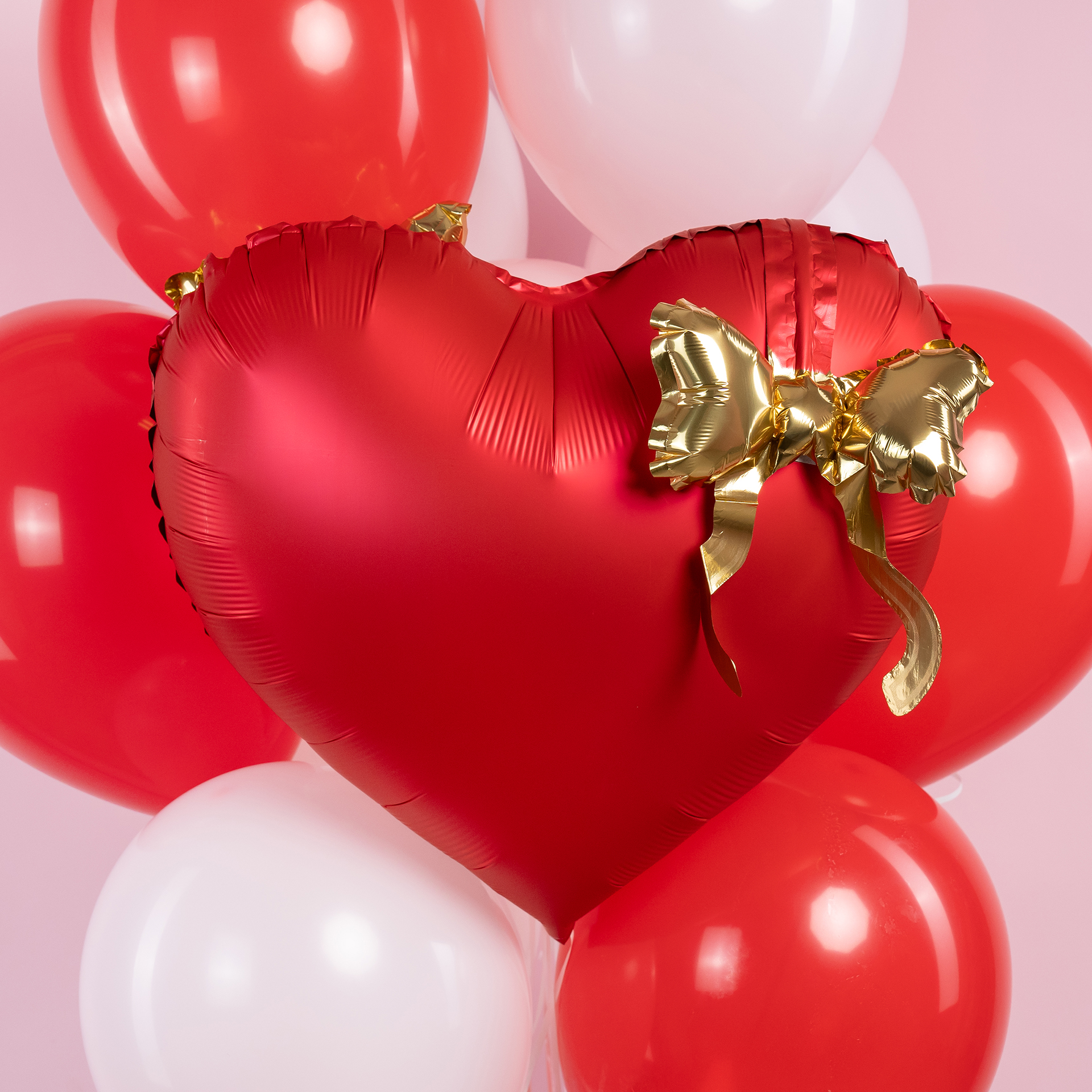 Эффектный фонтан с красным сердцем и золотым бантом создаёт атмосферу страсти, романтики и яркого праздника. Контраст красных и белых оттенков с золотым акцентом делает фотосессию стильной, выразительной и эмоциональной.