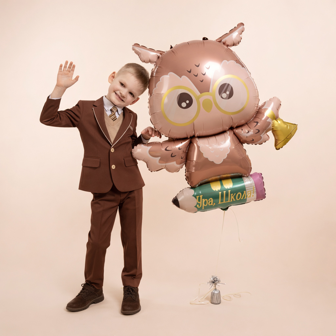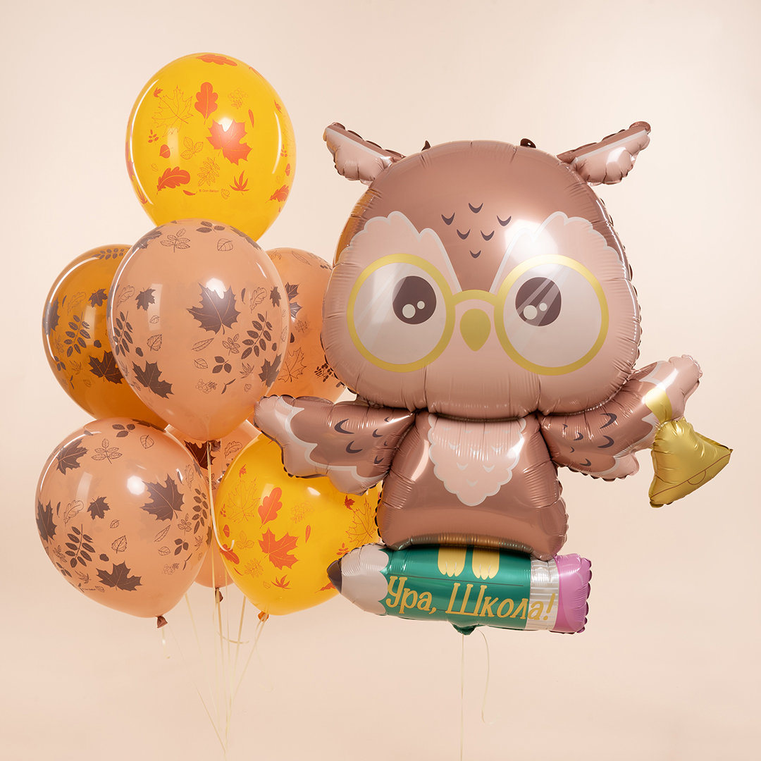 Фотозона, посвящённая празднику знаний, выпускному и началу нового учебного этапа, создаёт атмосферу радости и торжества. Композиция из воздушных шаров в тёплых осенних оттенках дополнена латексными шарами с листьями и эксклюзивной фигурой совы.