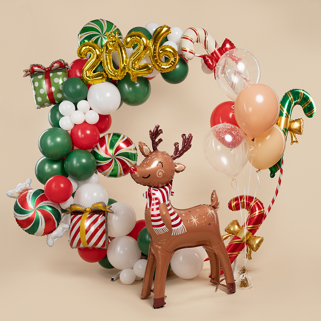 Эффектный новогодний букет создаёт атмосферу праздника, уюта и зимнего волшебства. Золотые и красные акценты, звёзды и леденцы в воздушном декоре сделают фотосессию стильной, тёплой и по-настоящему праздничной.