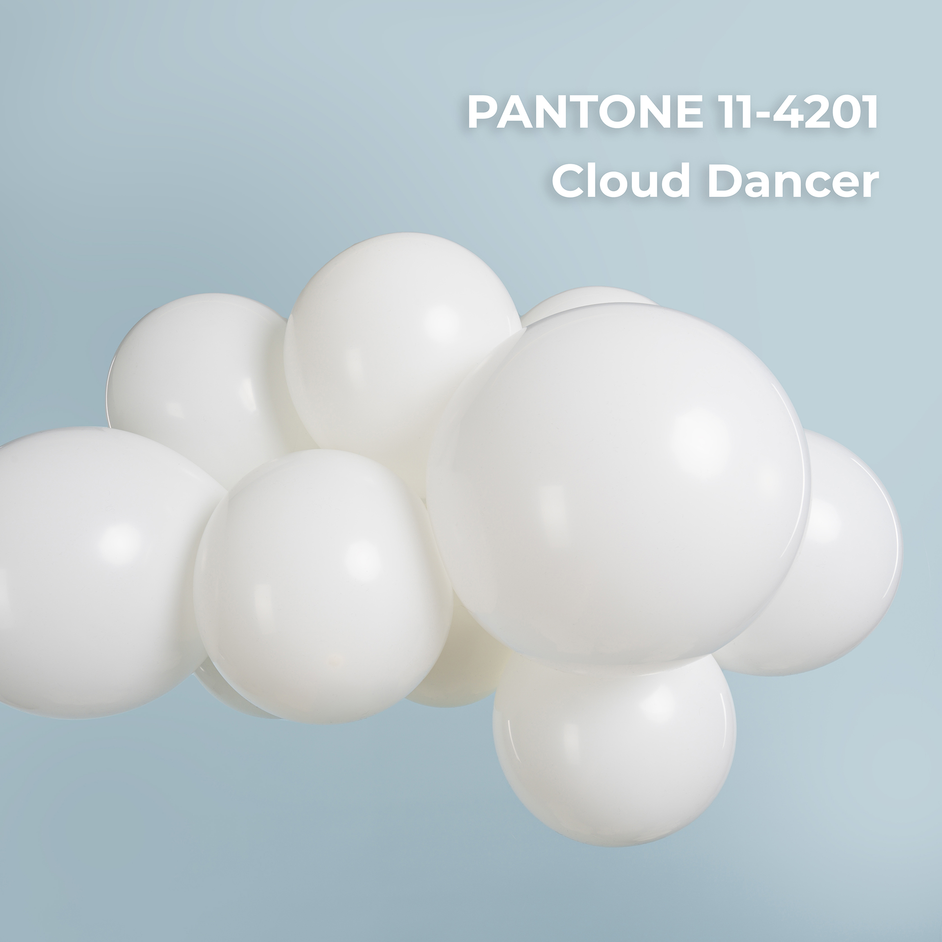 Фотозона в оттенке Cloud Dancer воплощает атмосферу спокойствия, лёгкости и внутреннего баланса. Воздушные формы, чистый белый цвет и минималистичный декор создают ощущение тишины и безмятежности, превращая фотосессию в эстетичный арт-кадр.